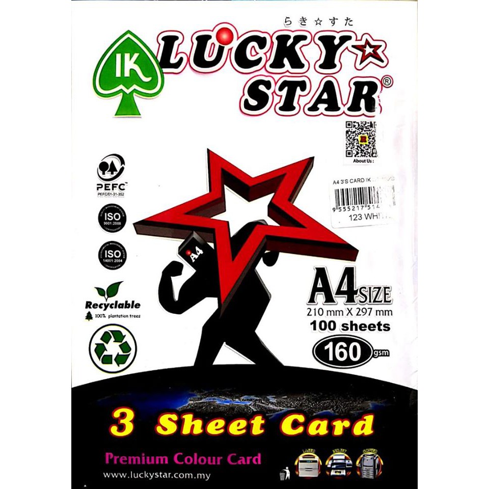Lucky Star A4 3 Sheet Card Cs123 White 160gsm 100 Sheets Shopee Malaysia