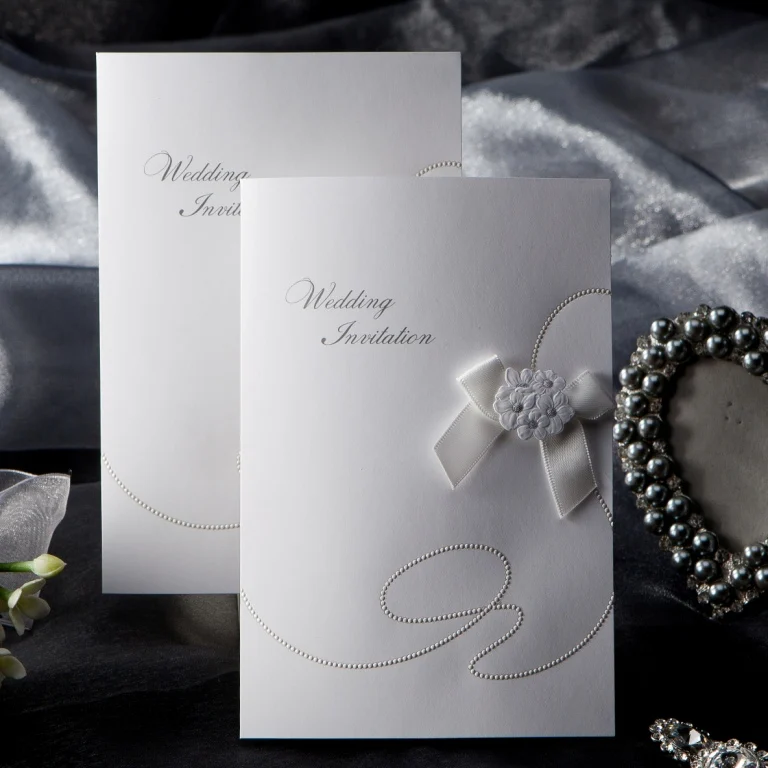 Wishmade Elegant Vertical White Wedding Invitation Card With Pearl Bow W1119 Buy White Wedding Invitation Card Vertical Wedding Invitation With Pearl Elegant Vertical Invitation Card With Bow Product On Alibaba Com